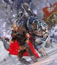 At any rate, the boar was jettisoned in favor of the Saber-Toothed cat who simply is lower to the ground, and thus I found it easier to make a tighter composition.