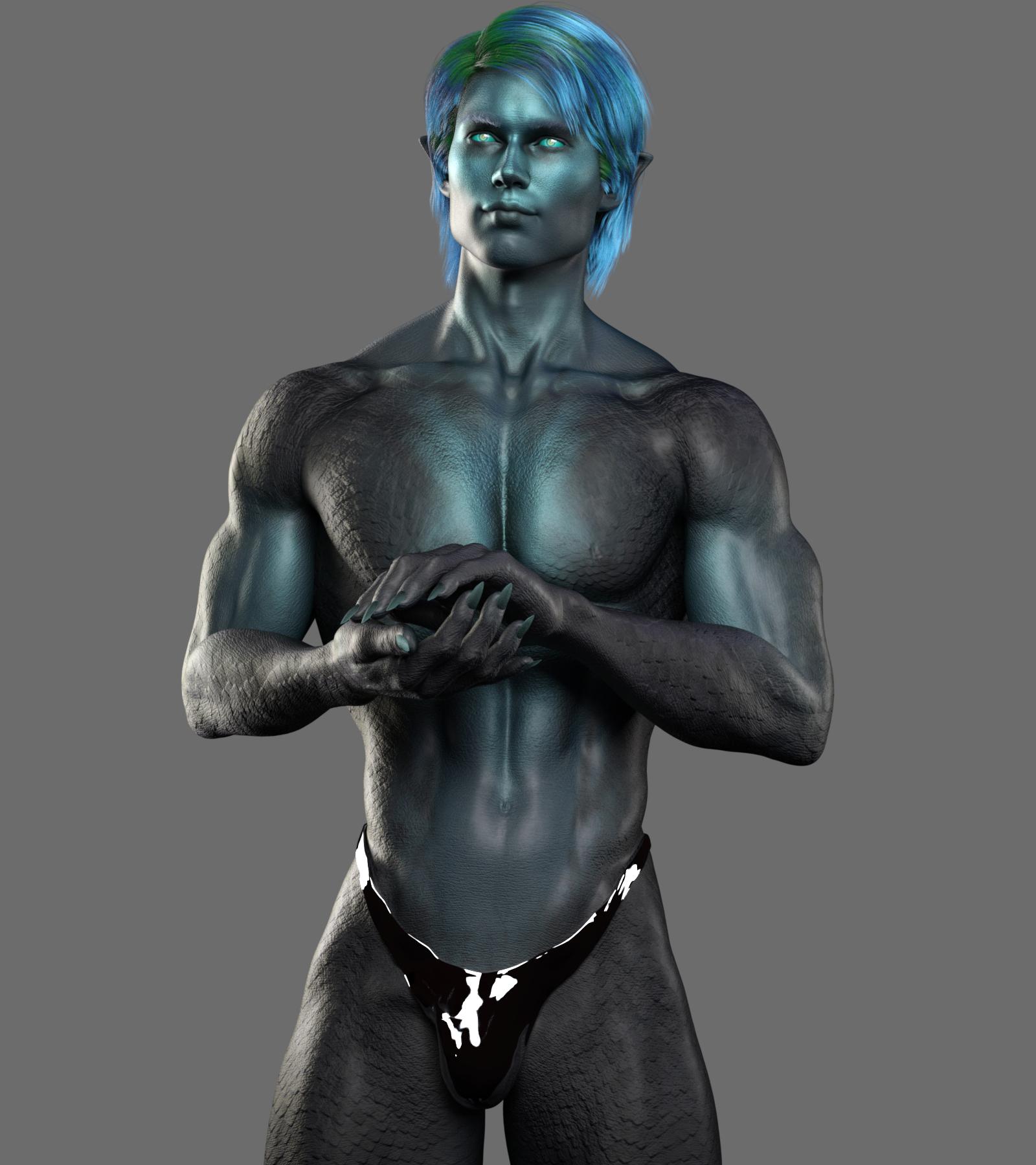 So the Reptilian Skins for Genesis 8.1 Female work just fine on Genesis 8.1 male with the UV swap.  I particularly like the eyes. I turned off the scale displacement, as I only like a little scale.