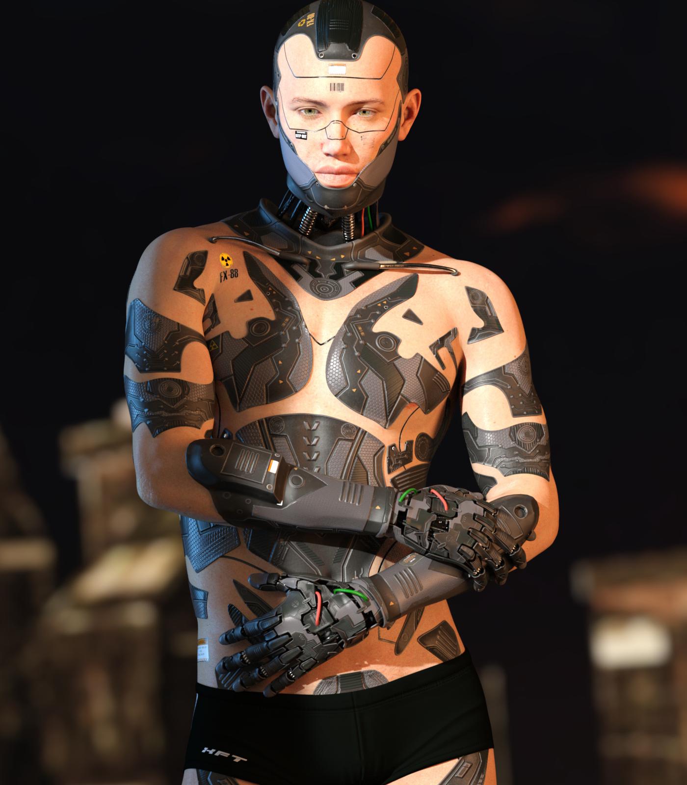 Although it appears obviously designed for female Genesis 9 characters, since it has a corset and sort of 'breast armor/crotch clamp' thing happening it works pretty well with male characters, especially the darker texture. I did buy the color expansion, but for some reason, the black looks better.
