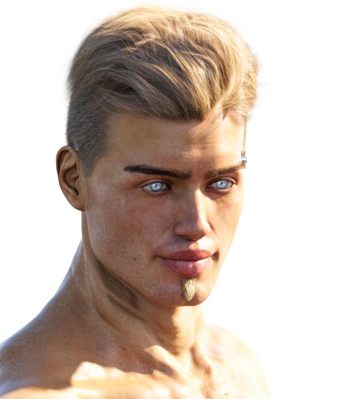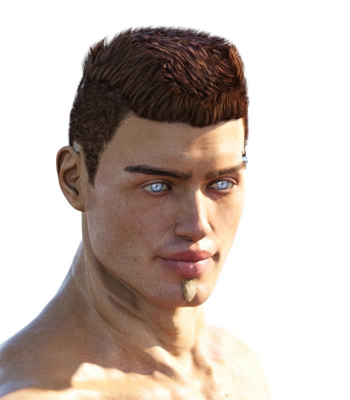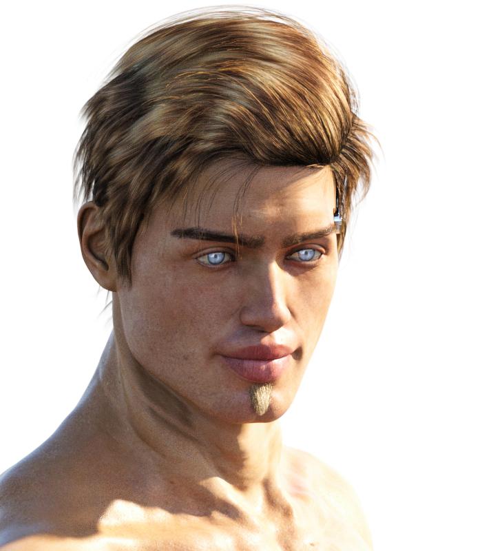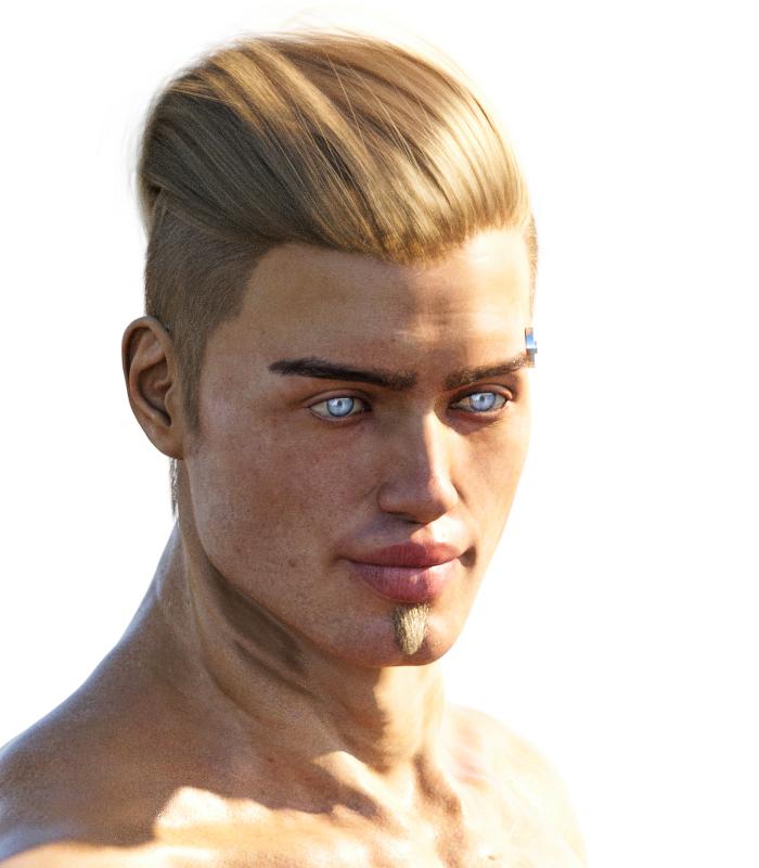 Nick Hair- I see this hair in the store a lot and in use in promos. There is a reason, its a nice basic. The hairline is sufficiently masculine , and the swoop is nice.The PA also included a lot of hair colors, and it renders quickly. This is a good value hair. It also fits well. Wheee a hair without an inch of skin over the ear. Like that.