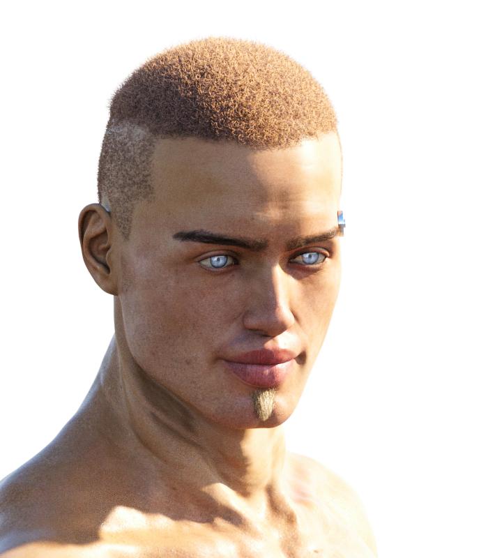 I really like the masculine shaping of the torso hair, and the placement of the arm hair. The goatee (called goat in the hair system lol), and head hair is also really cool.