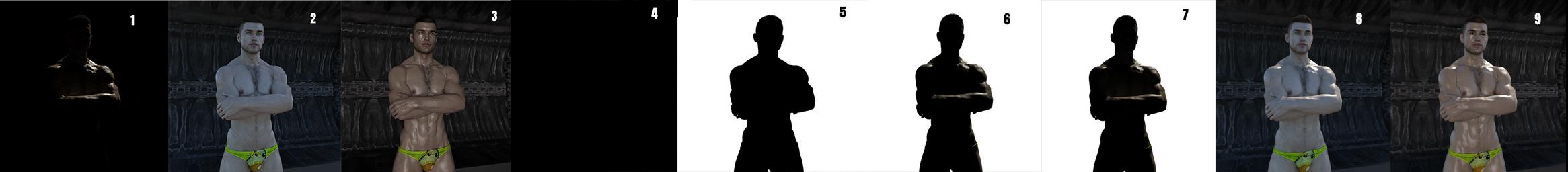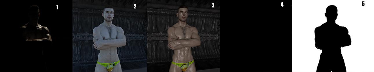 12. Step 5. Is very clearly a mask as well, so I hide the environment and render an identical image to step 4.