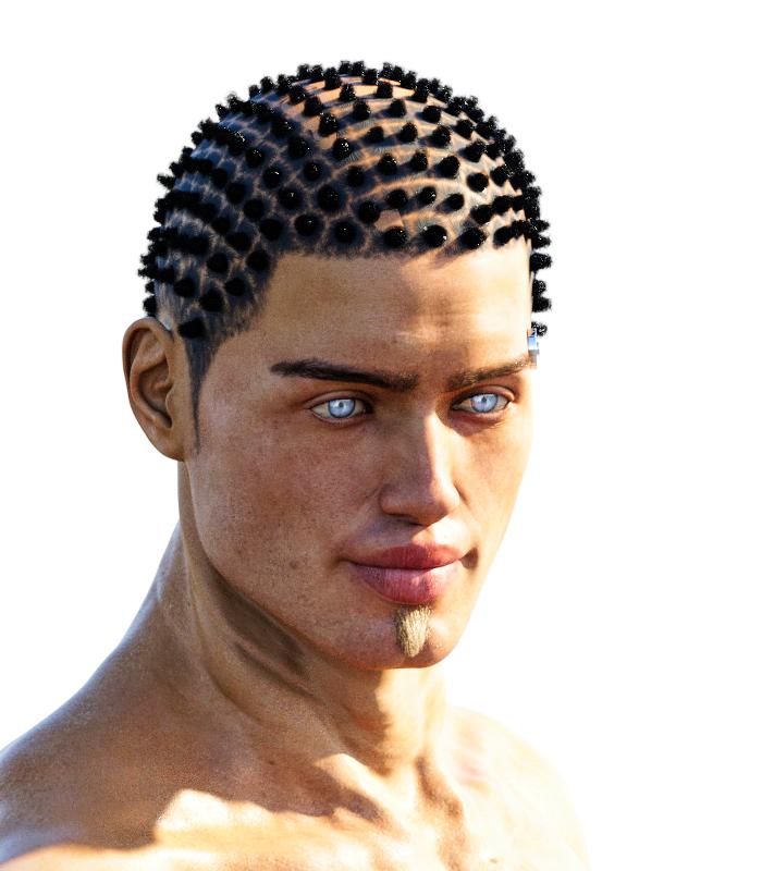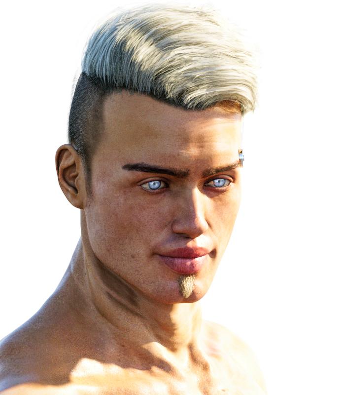 One thing to note about Tjark is that, depending on what else is going on in your scene, it may throw an impressive render time hit into the mix. I did one render with it -- which, to be sure, had three other characters and their hair as well -- and it took 40 minutes. (Dropped to CPU, but I expected that, with all that going on.) I swapped that out for Laticis Imagery's Crew Cut Hair, and render time dropped from 40 minutes to 5 minutes, and that was literally the only thing that changed about the image.