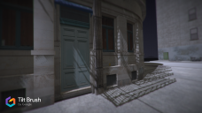 OK ..i got this short clip to Youtube. Understand it is my 1st one, so its not great, or even good, but shows the potential of the app, Tilt Brush. The overall glory will be from within the VR world, but at least it is possible to do walkthroughs for video. In this one it will be necessary to enlarge the "world", and also bring the camera down to street level. The other part is the inability to apply textures. Perhpas it possible to paint the buildings, but working in 3d is not easy. yet :)