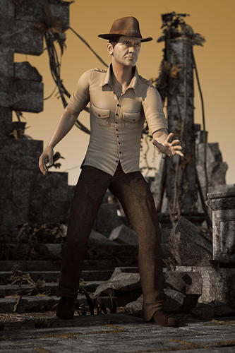 Character's "Adventurer for M4" from FoRender. Once again, rendered using Octane and postworked in Photoshop.