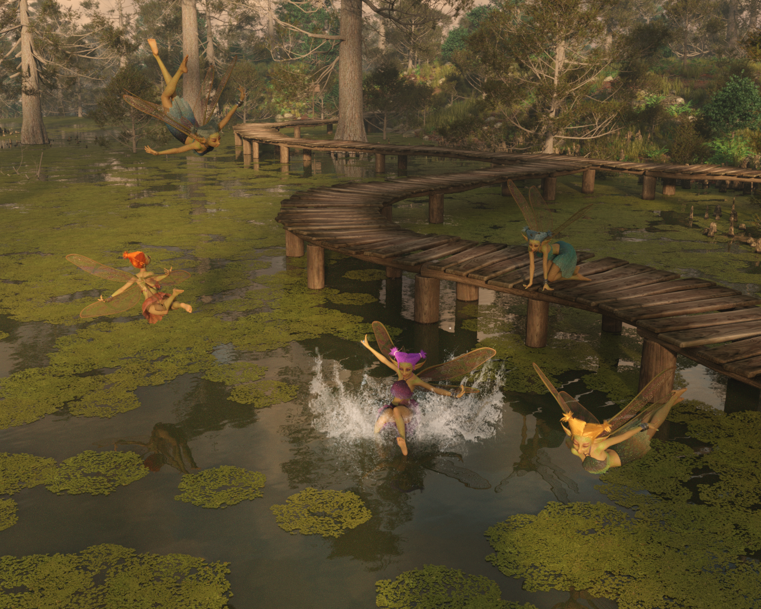 I found some interesting wildlife in my swamp... the Swamp Sprites come out to play around dawn.