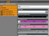 It's pretty easy to change the colors of objects on the fly.  You need to find the actual objects though, not the proxies or instances.  Then select the matching surfaces and change the Diffuse Color and Transluscency color.  See screenshots.