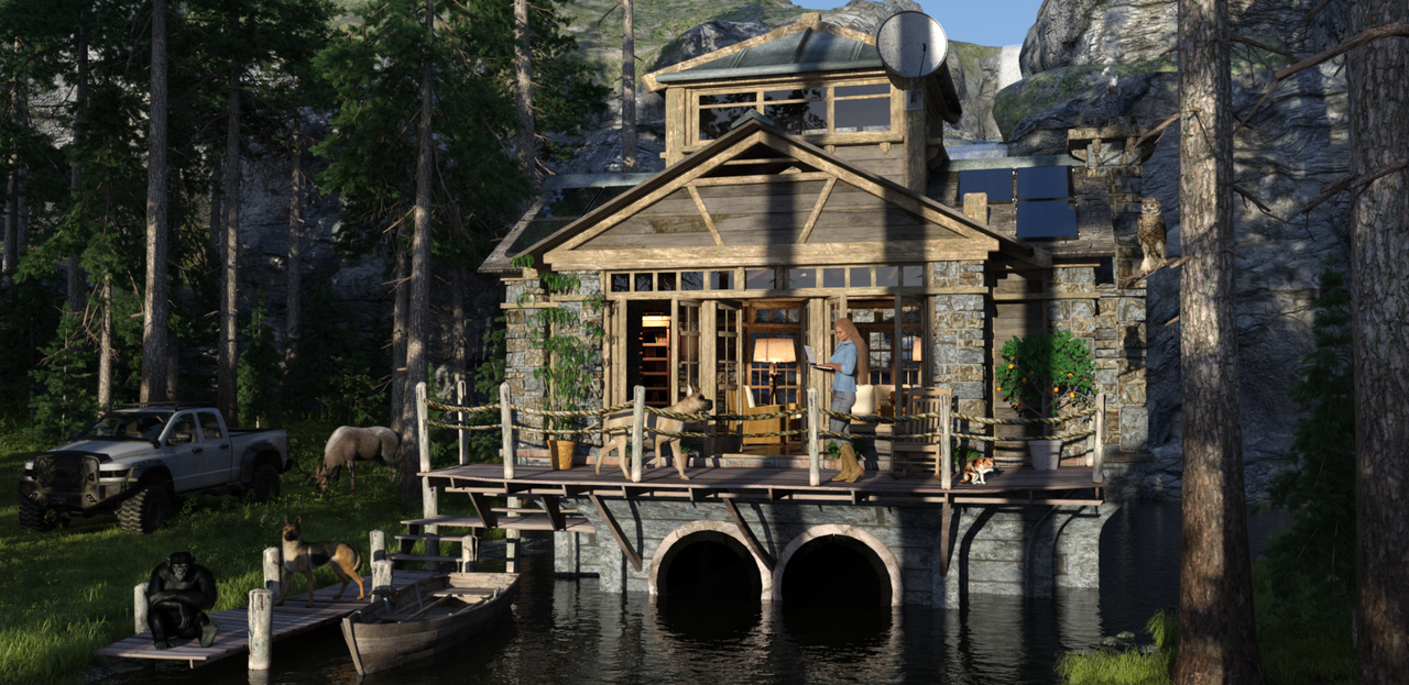 While we wait for the mountains from Howie, I used FirstBastion's Hidden Waters Lower Falls for the mountains. The waterfalls in that set was replaced by one from Sickleyield's Rigged Waterfalls Iray. And finally I used a mask to create a clearing for the truck.