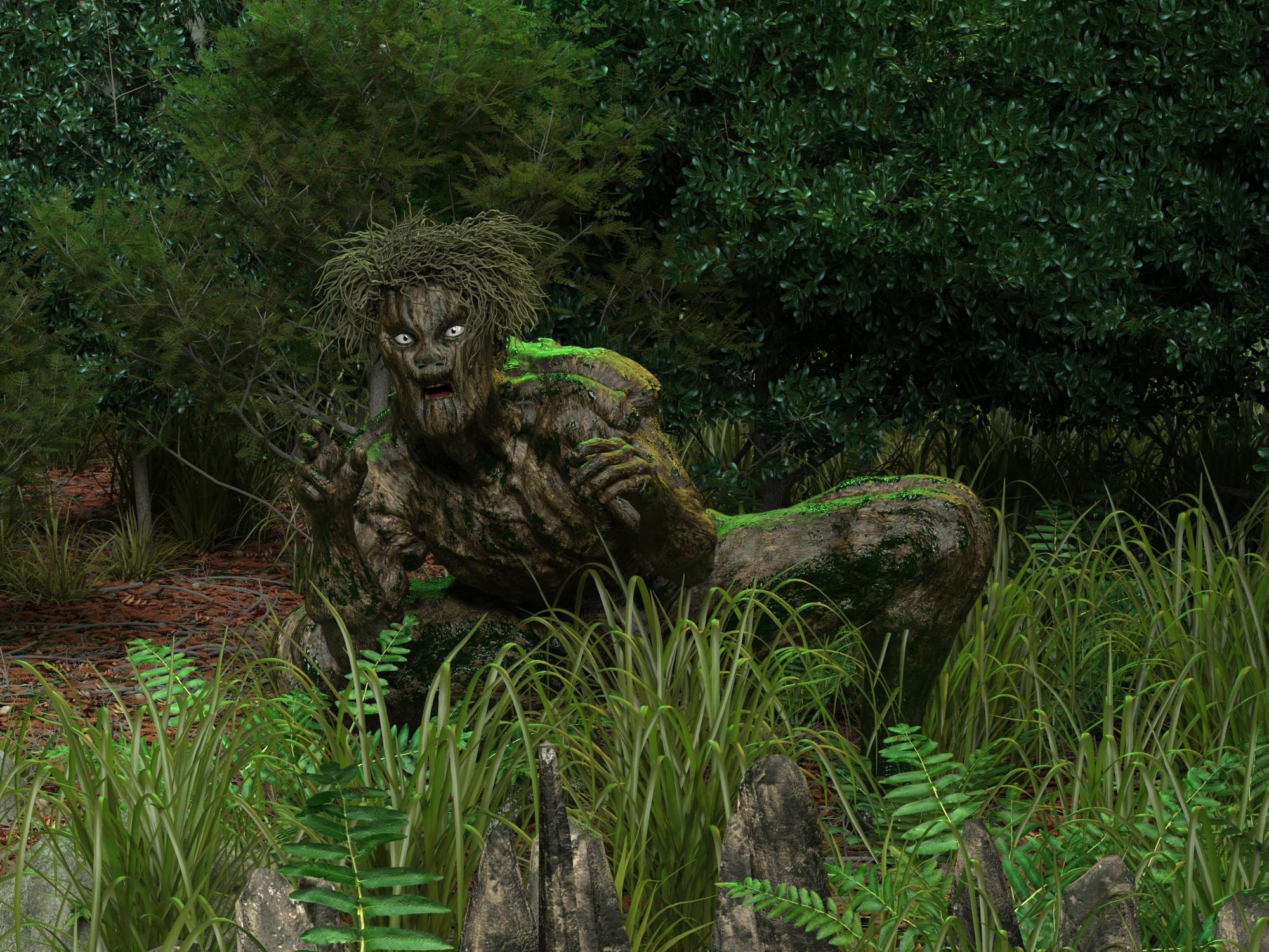 I was really just playing with the hair. Then I decided I needed to put the hair on a character; I chose Barkley. He needed a pose, so I chose from Hiding and Lurking. Then I decided I needed a background for the character. So, where do I go? UltraScenery, of course. The Swamp seemed like a good choice. The hair is Chaotic Hair, but I modified the dForce parameters in the surfaces pane. It is considerably more chaotic now!