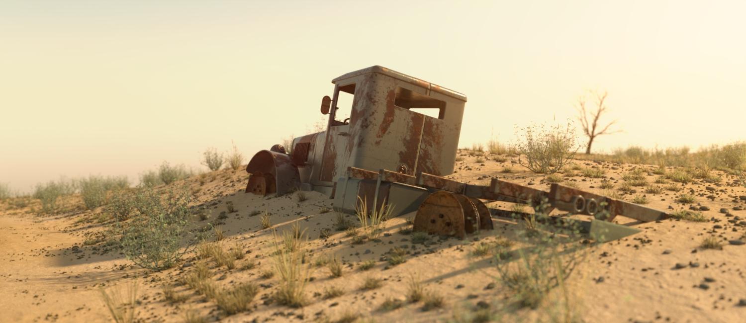 Well done. You beat me to a similar idea I had that included an abandoned truck but I was going use this one instead: https://www.daz3d.com/old-jalopy-for-pickup-truck-1930