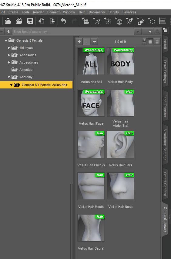 Cross Posted since it is being asked everywhere: I bought the bundle, but couldn't find the vellus hair until just now - under :