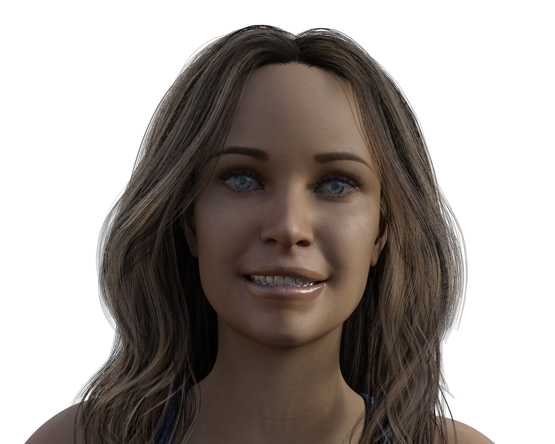 • Fine, short, vellus hairs have been added for the female face and body, bringing added realism for close-up shots. For example, fine, short, and natural hairs can be seen on the arms and face.