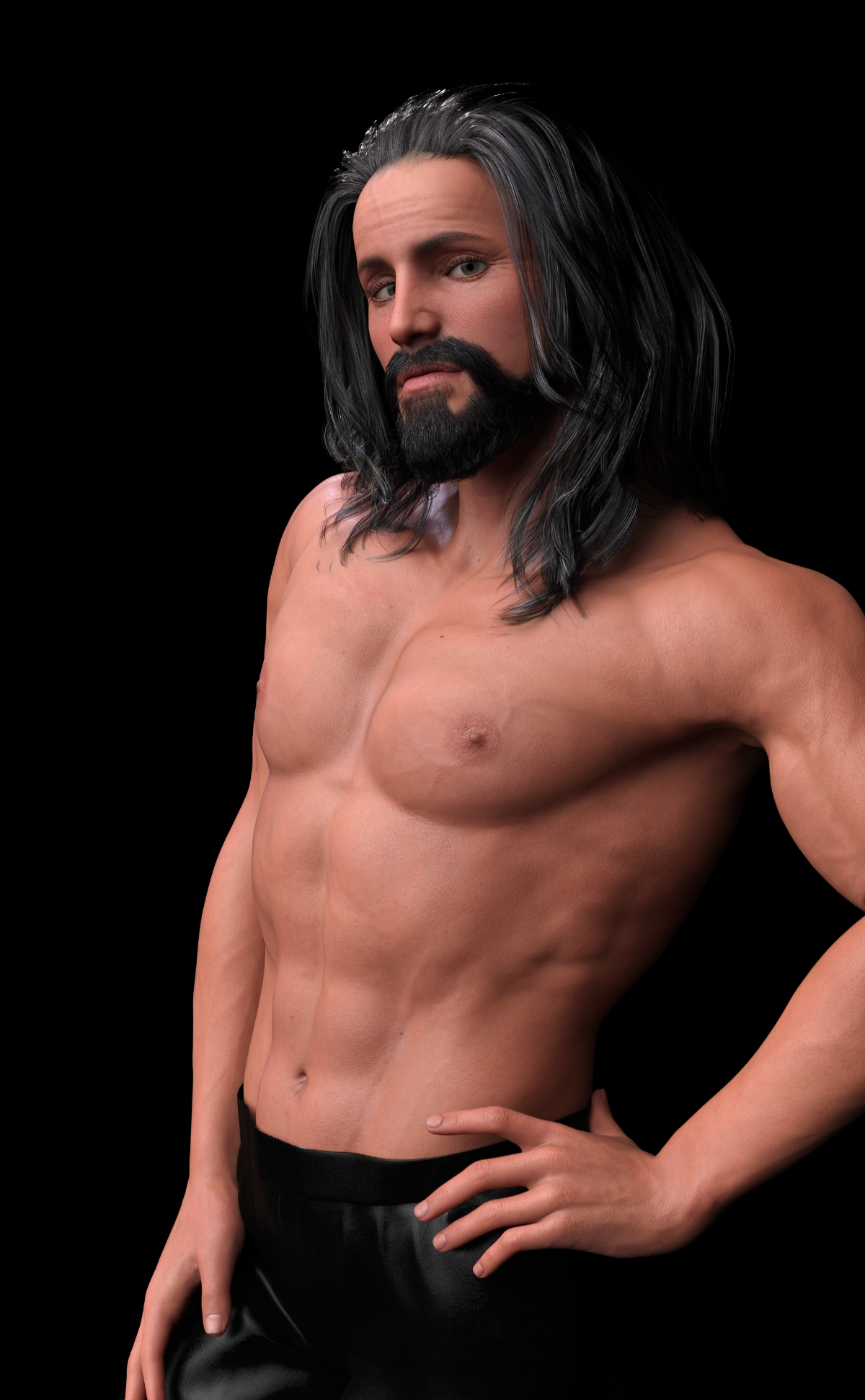 An experiment taking Victoria 8.1 (with the help of many collected morphs over time) to come to a male version end result with slight tweaking of the shader. This has been quite fun to test out the new visuals.
