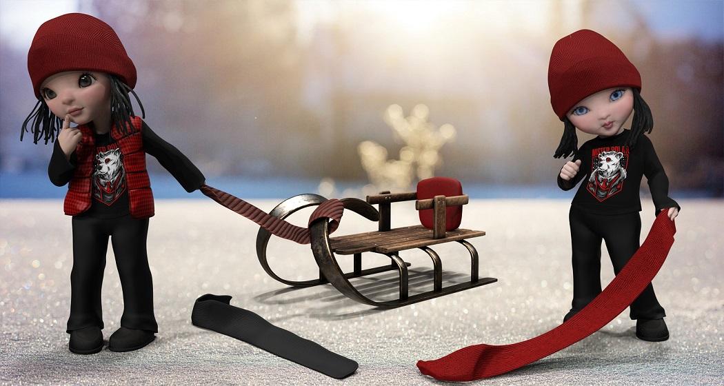 And do not forget about winter! Show is here so she can wear warmer outfit and can go to the hill to use her sledge thanks to Karth (with me and sade)