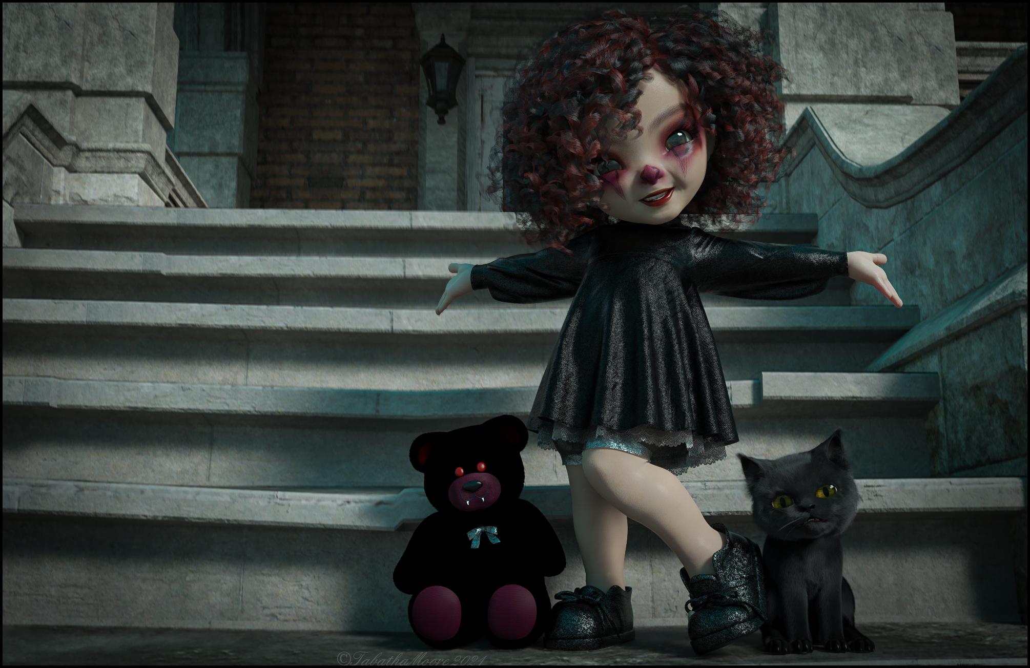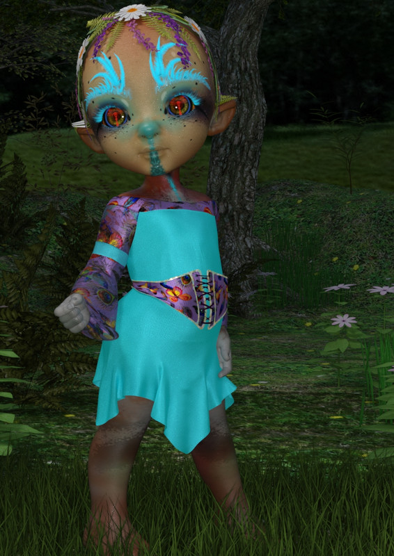 So here is Bugga Boo as a babydoll and then the girlis a bit Kath ,BuggaBoo and Growing up morphs ,and this is the longest a simple render has taken for me I don't usually have the patience ,but Primavera hair is a hog!!
