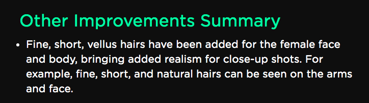 as to OP's question, someone else mentioned missing vellus arm hair in another thread, so presumably it doesnt exist or was not packaged properly.