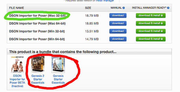In a prior posts I said that all I wanted to do was transfer the Dragon 3 to Poser and had little interest in using genesis stuff. I decided to go ahead and try to use genesis in poser and went and downloaded the latest version of DSON importer. (circled in green)