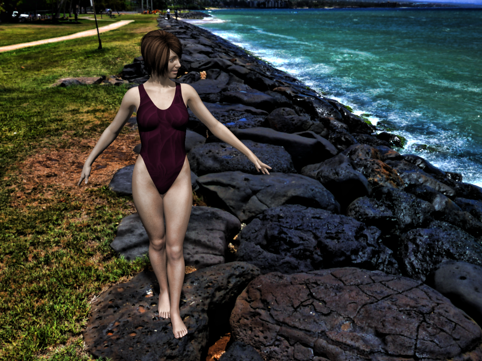 Opened Misty's preset in Carrara, applied the Shape Preset, then fitted the blended weight clothing. The Bikini bottom worked okay, but the top is suffering pokethrough, which if I was going to fix would be to open the top in the Model room and fiddle with the mesh.