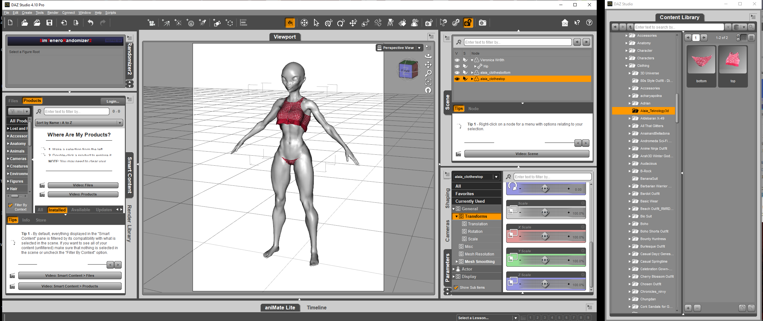 Still in Studio, I loaded some clothing for G8F. I converted the clothing to blended weight and 'fit to' the morphed G8F character. I saved a second scene subset with all the elements in the default pose.
