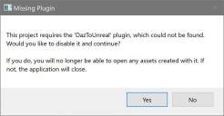 After activating it normally and restarting, I get the attached error and the project won't even load now. Good thing I'm familiar with this type of crap from Daz and was only working with a test project. The only way to get back into the project is to delete the daztounreal plugin folder under Engines/Plugins and then restart the affected UE4 project. You then get a standard UE4 plugin not found error but you now have the option to disable it so the project will load.
