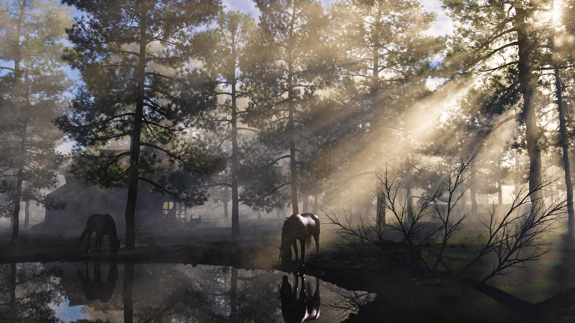 @aki3d I like the additions you made, the fog really turns out detailed here and the effect with the light is stunning. these sort of renders do take a lot of time. That horse in the sun is maybe a bit too glossy, you could try to make a spot render (to a new window) with only the horse with a more rough pelt and add that to the right spot in post