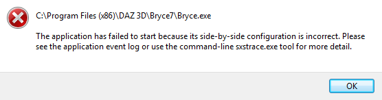 I have Win 8.1 and Win 7 on one computer. I have to run DAZ Studio under Win 7, so I'm trying to get Bryce on my Win7 partition. I keep getting the error in the image on Win7. I have removed all DAZ software from the Win8.1 partition, but I still get the error message. Any ideas?