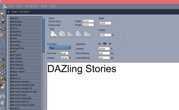 8) This is a magazine cover, so the final entry must be in portrait format (taller than wide) and must include the following elements: title--DAZling Stories; issue--October 2014; at least 2 fictional story titles; and price **UPDATE 10/3** -- 25¢-- in US currency or similar small denomination in artist's native currency if preferred. The Carrara text tool may be used for this, but is not required, and would count towards the Carrara-made item requirement.