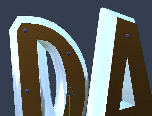 Using textures in my shaders, I went for a rusty metal frame with wood lettering. I created screw heads and added them around the letters. I created the logo using text, then converting to vertice editor. I made the DAZ letters larger and then turned each letter sideways a bit to see the depth.