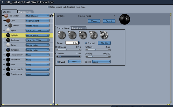 Basically, I started with a color gradient and added Fractal Noise. I then adjusted the noise to get the look I wanted, I then copied and pasted the noise into the Highlight, Bump and Reflection channels.