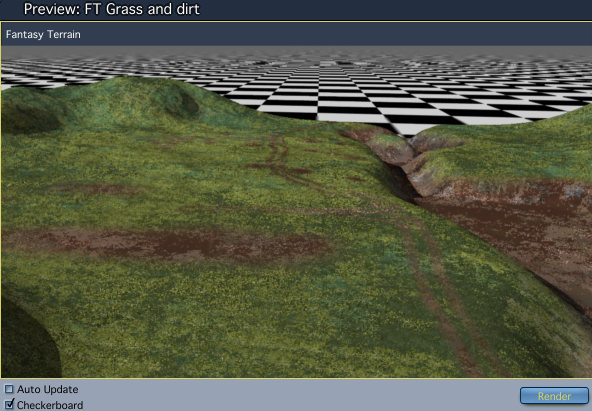 The biggest problem when it comes to getting a round hill is the fact that the terrain profile is basically square (or oblong), so I was getting a lot of suspiciously square looking hills from the presets.. In the end I exported the preset that I most liked as a png file, and edited it in Photoshop Elements, before importing it back into Carrara. I made the track in Photoshop simply by drawing the ruts on a separate layer and then blending it via the Darken function.