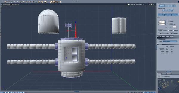 - constructed chassis in vertex modeler, with uvmaps and shading domains, and placed primitives and then grouped vehicle