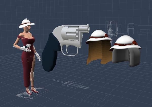- hat with prop hair - start, still needs to be morphed and uvmapped