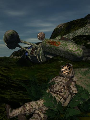 evilproducer So sorry you wrecked your fusilage. The scene is looking good and creepy now! I would brighten it up a bit though, it's reading pretty dark on my monitor.