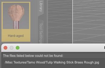 When I'm trying to load the cane or one of its material presets, I have missing files errors. The cane is looking for these files: