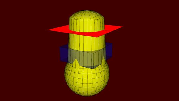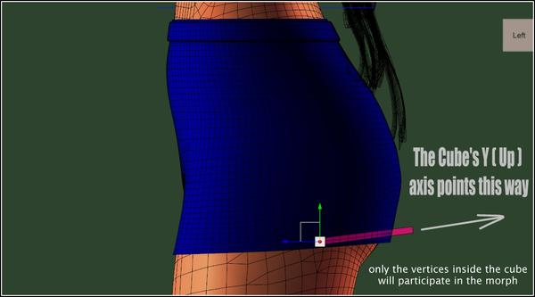 Figure 3 - a third mode, with a cube to select the vertices to morph and a plane gives the displacement direction