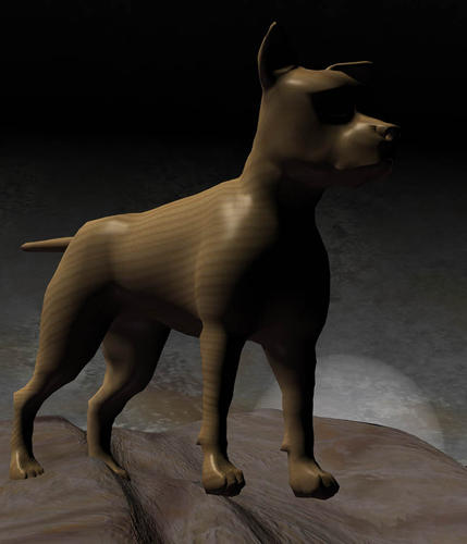 Re: the chihuahua breed, did you know that DAZ's Lorez dog has a chihuahua morph... lacking anything better at the moment I often use this model as a stand-in for artwork that I do of my real world small terrier; here's a quickie render of what the chihuahua sort of looks like. Next step is to figure out LAMH... I agree that the paws need a bit of work.