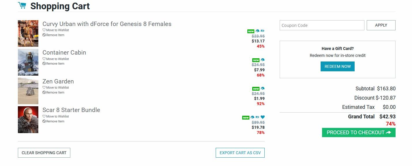 I really don't get why Daz insists on making shopping such a pain. If not for its content being exclusive to the store, I think these antics would drive a large number of people away from all but the big event sales.