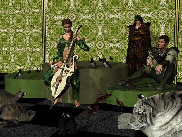 With his domain steadily shrinking as the humans multiplied, the old woodland god experienced frequent bouts of melancholia. Certain that he surely would pass from this world very soon, he decided that he must once agin enjoy the company of the elves, if there were any who had not gone into the West. He was fortunate to find Mirela living in a cottage at the edge of the Dorin Rud. She welcomed her old friend and did her best to cheer him up with tasty cakes and elven elixir.