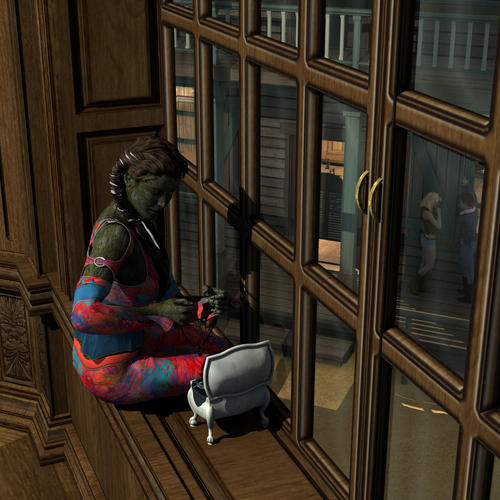 ETA: Also used: The AntFarm's Rock Golem, Powerage's Shoes Collection (rendo) (color changed to match her dress), Anemone Hair, K-Nicky Hair, Captain Runner (seemed appropriate), I Am On The Phone, Sheer Terror.