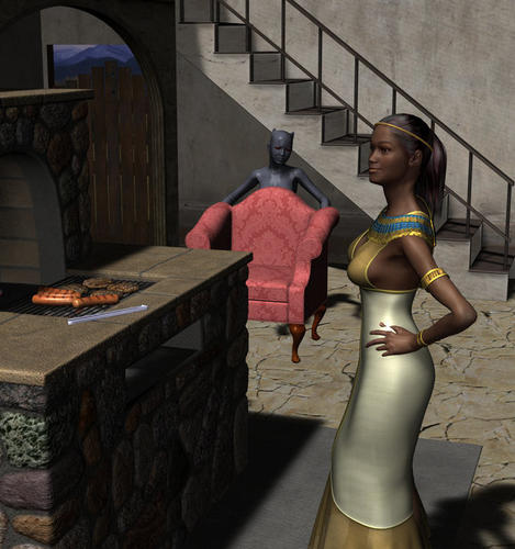 I had to use native shaders on the water in Fountain of Health because it looked invisible in Carrara 8.1 and I wanted it to look strange (not non-existent). Also the stand for the Big Cats (one of the "accessories") makes a rather serviceable tea table. :)