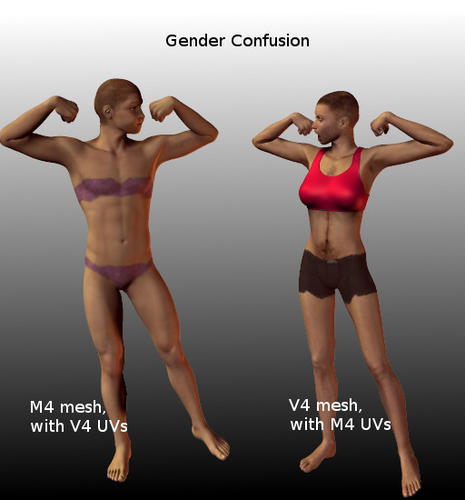 A few years back (maybe 2009/2010?) during the PC Anniversary bash there was a "Guy Stuff" coalition in the "Members Vote" part of it, and a bunch of V4 male textures was included in our haul (my alter-ego "vagabondfantasist" was involved). There was some discussion on the relevant Members Only forum thread about how these V4 male textures could be used with M4, and a simple process was documented and proved. I remember posting a screenshot of M4 wearing the default V4 texture, purple undies and all!