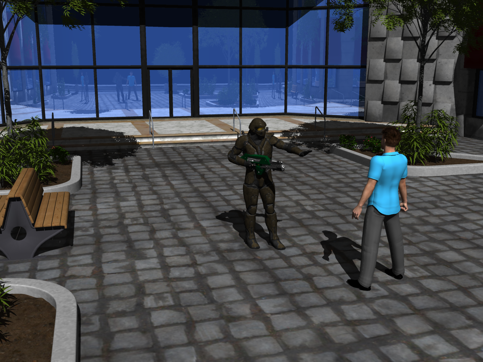 @Bunyip02 Thanks, almost finished on that one, re: Stop ! Identify yourself ! - Good pose on the soldier. Like it. Also that's an interesting backdrop. Is it a DAZ set? I like the 1960s-70s style paneling to the right and I'm curious as to what the whole Plaza looks like.