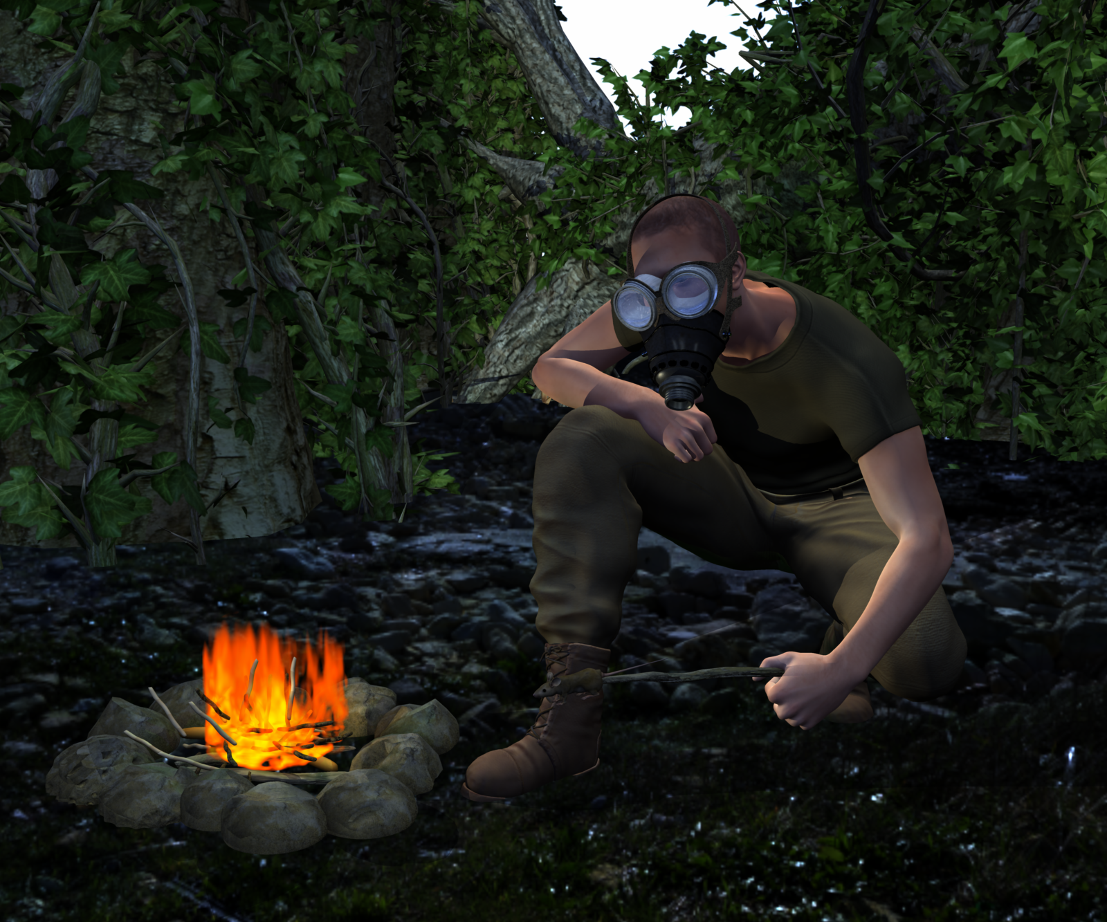 @Diomede - Survival! Like the theme. Bythe way did you see that thread on HDR light Domes ? I've only just come across it. So that's a way of getting the reflections to look right off of clothing etc. I'm going to experiment with it as soon as time allows. An appropriate HDRI image (the thread shows lots of them available for free) might go well with this image as well. I would amend my own entry but at 5.5 hours to render it, that puts me off.