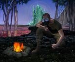 With the basic light coming from the HDR, I placed two additional lights that made sense to me.  I placed a yellow-ish bulb light with the fire.  I placed a rim light (spot) above and behind the M6 figure to try to separate him from the background.  Ironically, I placed the gas mask last.  It is a prop for Victoria 4, not a conforming figure for M6.  The top strap of the gas mask completely thwarts the rim light on M6's head.  sad