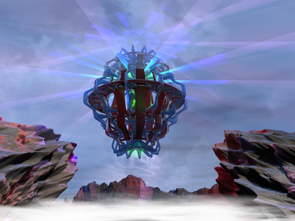 As I was rendering one of my Strange Objects, When an unexpected incidence occurred. I put a Radial light with a multi colored gradient inside it. When I added an infinite volume cloud slab, the light rays became visible. No volume light was set up on the light or sky. The light setting are ( Infitive, Gradient. Falloff None.) I'm thinking that the visible rays are possible because they are passing thru the volume of the slab. I have tried to reproduce this effect but no success. In my 20 plus years of using Bryce this is the 7th time Bryce has render out an effect that not only surprised me but eludes my knowledge of how it's is done. So the name Phenomenon 7. I feel it suits this challenge because it's the magic of Bryce.