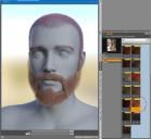 As for the hair color, I mostly get the same applied to all parts, but there are a few that do not have a uniform bitmap, notably Color 10 (thumbnail looks brown, but comes out as a "salt and pepper" mix, wrong base bitmap applied? top half black, bottom half white) and, of course, Color 16. That one has a candy-stripe pattern running through the main bitmap. Since the hair is so short, only a portion of the texture is actually used (UV mapping is just one big square). By varying the tiling, even a little bit, you can make the hair on the head and the eyebrows cycle through red, orange, white, and pink. The beard, mustache and sideburns have a different UV (small strips), so you get a travelling wave up and down when using the vertical offset. Do all the hair parts at the same time, and you get quite the trip. Psychedelic, man... (ooh, flashback)