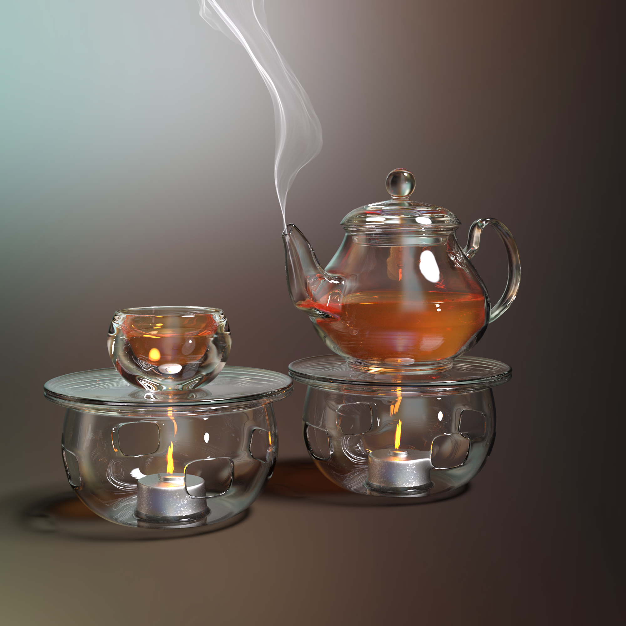 I have been going through my library of non-Daz sold stuff and making sure things work and found a prop set by GMS Props, Glass Tea Set that I had forgotten I had downloaded. After I loaded metadata for it, I thought it would be interesting to see it in Iray, and then that led to my render, but first I had to add a smoke prop from MattyMax (in place of steam). My flatmate liked it, and since i had accidentally shattered his handblown glass teapot years ago, I gave him the render. (I replaced it with a cast iron teapot, since glass ones seem to be not available.)