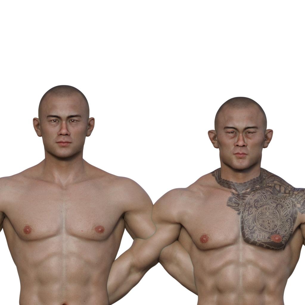 Your original Tamati 8 (1st pic, on the right) I can only get by loading original Tamati (which starts with 100% Tamati and 75% Kwan 8 head, and 75% Kwan 8 body, but not any Kwan 8 as in "People"). Dialing in an additional 75% Kwan 8 adds another 75% to the head and body morphs for a total of 150%, and gives me the figure on the right, which looks a lot like your default.