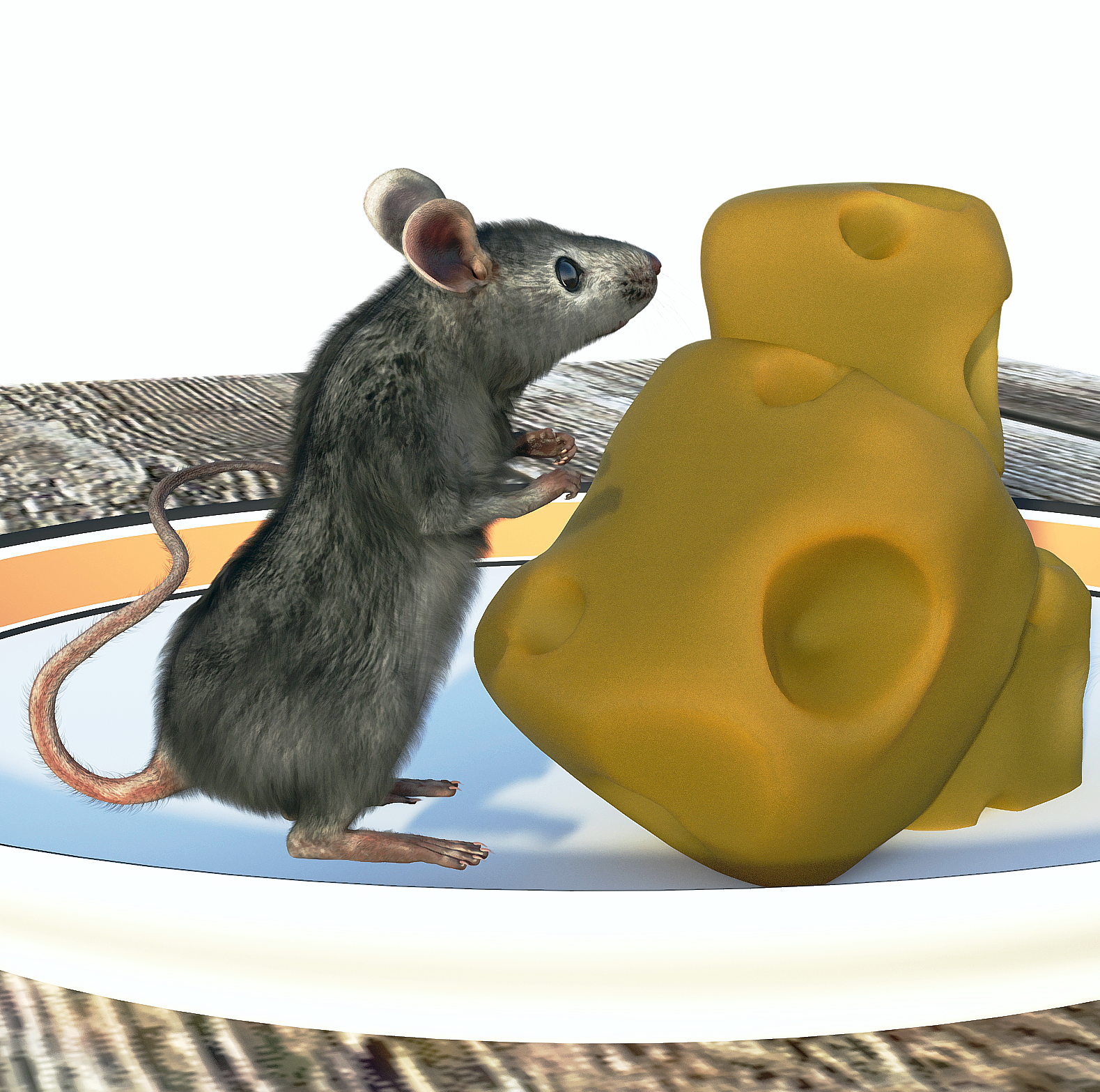 Here's a look at the basic render of part of the image I'm using with the mouse and cheese in the scene. This shows the color of the cheese (default) which comes with the 3d Universe Toon Mouse. The mouse is Mouse by AM. The finished scene won't look like this as hand painting, several programs, and plug-ins on top of plug-ins are being used. I've got 13 of the 28 or so renders done but will have to fine tune and rework some of them. I hope to get this sucker done before hurricane season really kicks in, but won't be releasing it until I have a second book done too. So I am aiming for the fall. Anyone else have books out right now?