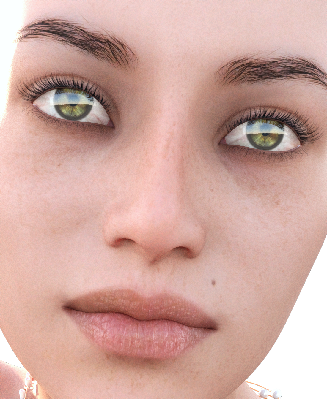 Something happens to the surfaces of the eye. Normally, the Eye Moisture is outermost, but with Sapphira, the Eye Moisture surface dips below the Sclera and Cornea surfaces, causing the cracks in the image. If you zoom in close, you can see the difference in reflection where the eye moisture is on the outside compared to the reflection where the sclera is on the outside. Use the Surface Selection tool to slowly move across the eye surfaces and you will see the info popup change from Eye Moisture to Sclera, and if you're lucky you'll see Cornea. I've even seen Irises and Fingernails (no joke) if you go real slow when zoomed in real close.